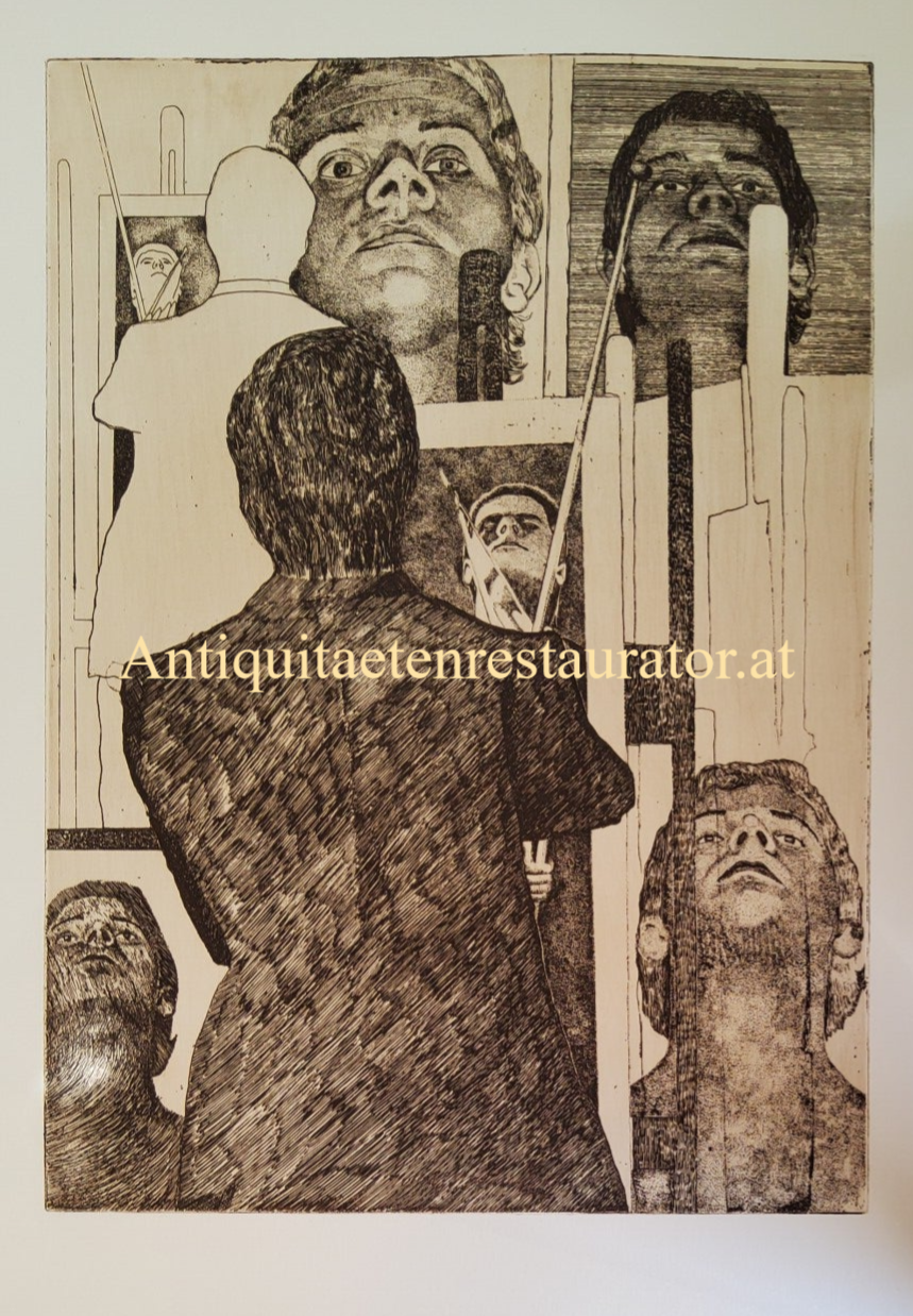 Robert Klemmer,(1938-1971) Radierung Selbstporträt-Klemmer malt Klemmer