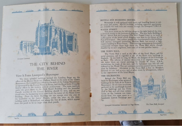 Die Innenseiten dieser 16-seitigen Vintage-Broschüre bieten einen faszinierenden Einblick in das touristische Liverpool der frühen Mitte des 20. Jahrhunderts.