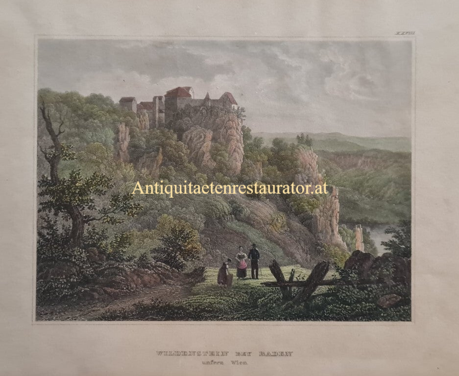 Wildenstein bey Baden (unfern Wien), Stahlstich aus Meyer's Donau Ansichten Hildburghausen Baden Württemberg