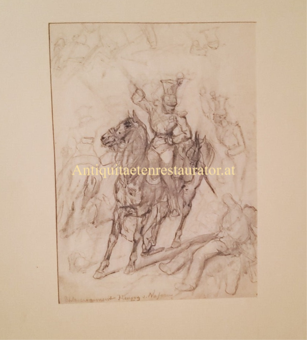 Friedrich (Fritz) L'Allemand (1812-1866), Bleistiftskizze Ulanenregiment von Herzog von Nassau , Reiter erhebt Lanze auf einen Liegenden und Skizze für Porträt dat.1840 mit Nachlassstempel