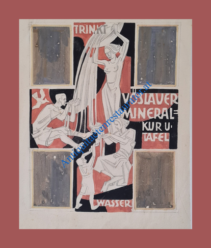 Entwurf eines Sgraffitto am Kurhaus in Bad Vöslau, aquarell.Bleistiftzeichnung